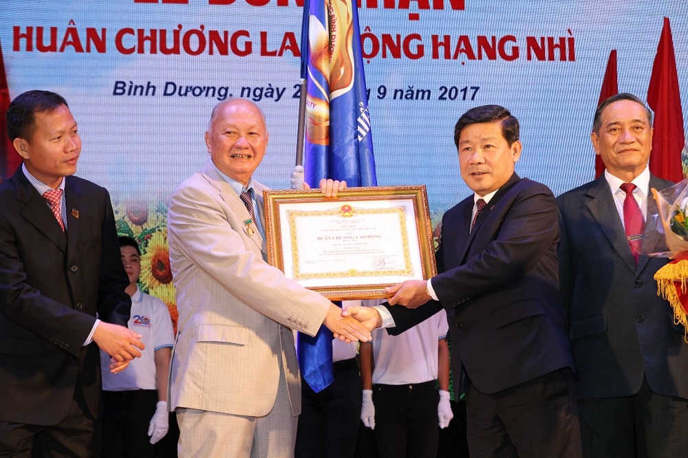 Năm 2017, trong Lễ kỷ niệm 20 năm thành lập Trường, Trường Đại học Bình Dương và GS.VS Cao Văn Phường – Chủ tịch Hội đồng Quản trị vinh dự đón nhận Huân chương Lao động hạng Nhì do Chủ tịch nước trao tặng; UBND tỉnh Bình Dương tặng Bằng khen cho 10 tập thể và 43 cá nhân đã có nhiều đóng góp cho sự phát triển của Trường.