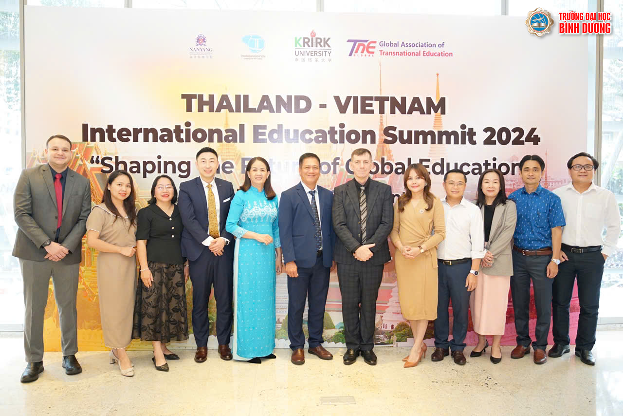 Hướng tới mục tiêu đào tạo hội nhập, ngày 16/12/2024 đoàn đại biểu Trường Đại học Bình Dương đã có buổi tham dự “Hội nghị kết nối giáo dục quốc tế 2024: Thái Lan - Việt Nam” diễn ra tại TP.HCM. Dẫn đoàn là TS. Đỗ Đoan Trang - Phó Hiệu trưởng thường trực nhà trường. Thành viên đoàn gồm có TS. Bùi Thị Kim Loan - Trưởng khoa - Khoa Ngoại ngữ, TS. Lê Quốc Tuấn - Quyền trưởng khoa, Khoa Công nghệ thực phẩm, ThS. Vũ Thị Thương Thương - Trợ lý Khoa Ngoại ngữ.