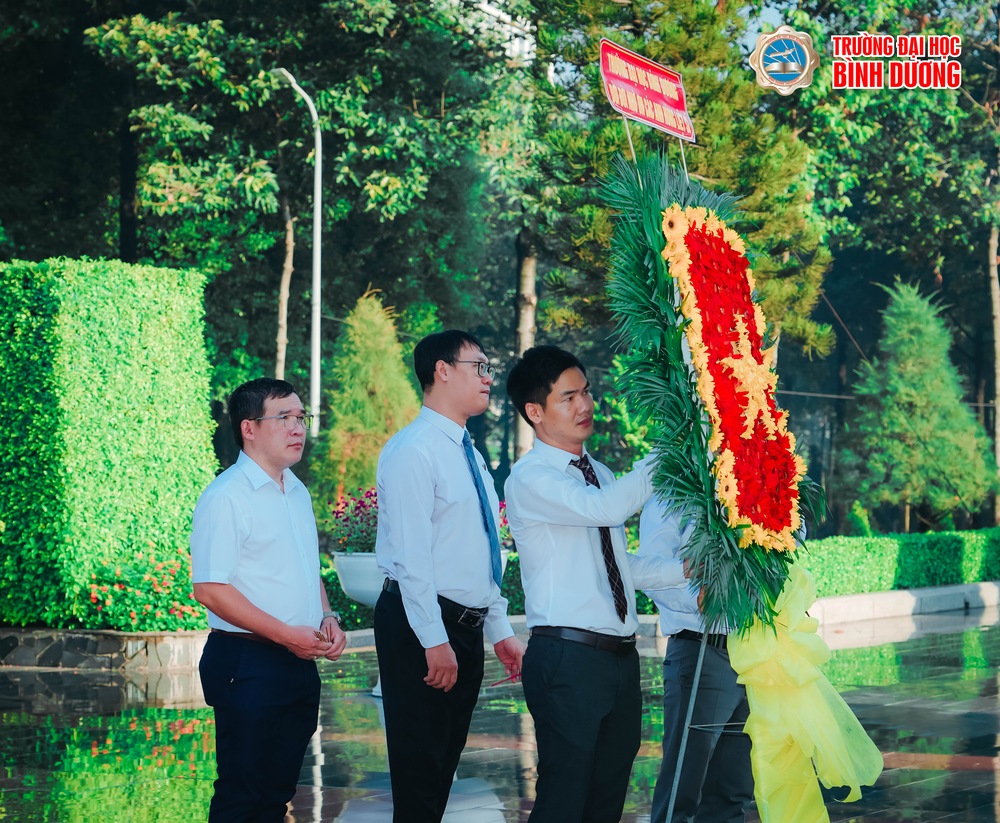 Trường Đại học Bình Dương dâng hoa viếng tại nghĩa trang liệt sĩ tỉnh Bình Dương.