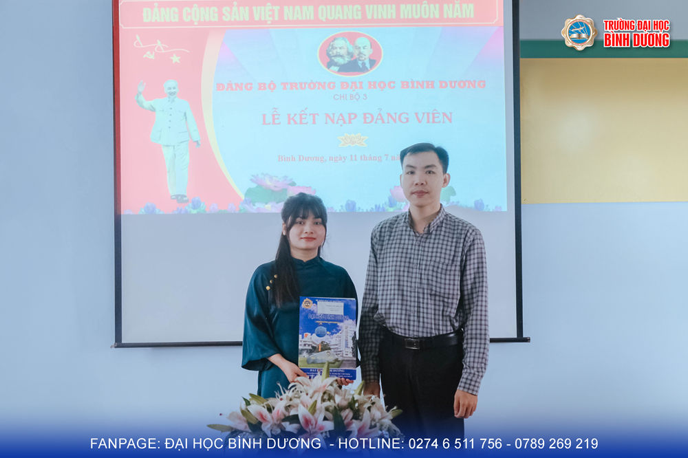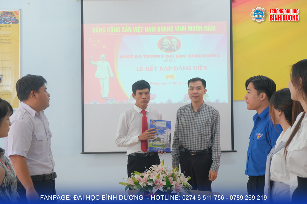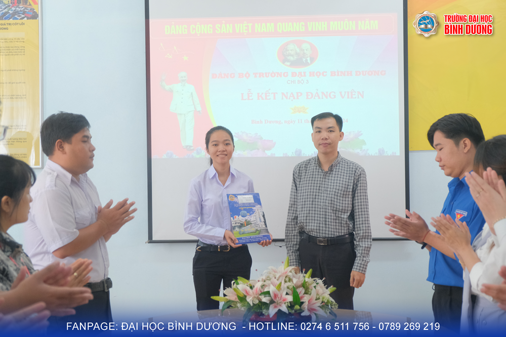 Sáng ngày 10/7/2024 tại phòng họp A2 – Trường Đại học Bình Dương, Chi bộ 03 thuộc Đảng bộ Trường Đại học Bình Dương đã tổ chức Lễ Kết nạp Đảng cho 04 Đoàn viên vào Đảng bao gồm: Nguyễn Thị Kim Chi – Chi đoàn 21DH01; Nguyễn Thị Thúy Hằng – Chi đoàn 25KT01; Nguyễn Quốc Cần – Chi đoàn 25LK01 và Huỳnh Thành Phú – Chi đoàn 24LK01 được đứng vào hàng ngũ Đảng Cộng sản Việt Nam.