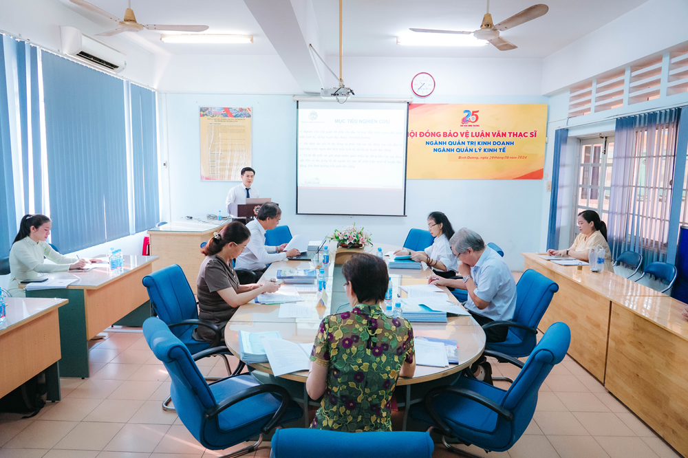 Ngày 29/06/2024, Trường Đại học Bình Dương tổ chức hội đồng bảo vệ luận văn Thạc sĩ cho 06 học viên cao học Ngành Quản trị kinh doanh và Ngành Quản lý kinh tế. Buổi bảo vệ luận văn đã diễn ra trong không khí trang trọng, nghiêm túc, theo đúng trình tự và quy định.