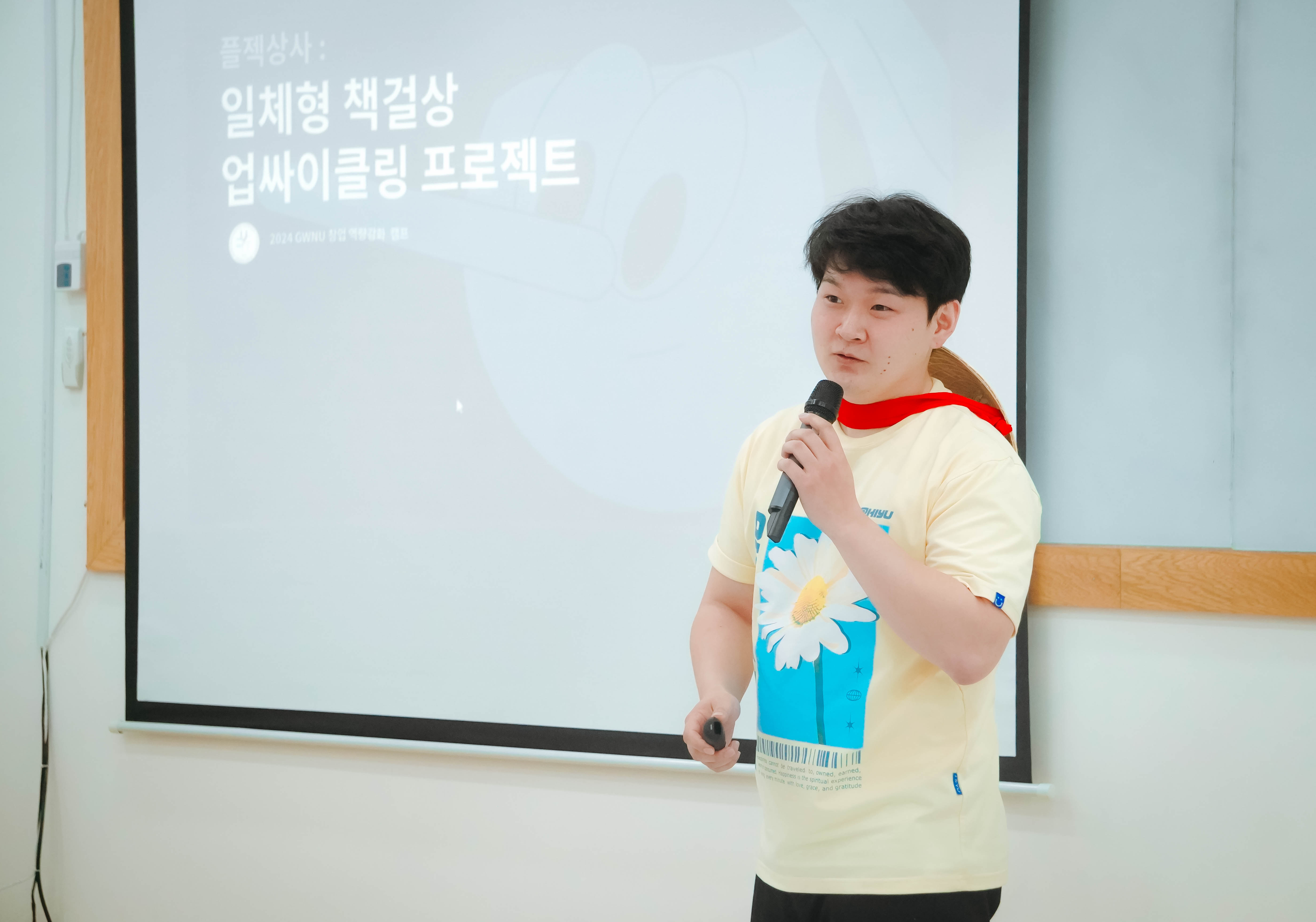 Ông Gang Kil Won – Giám đốc Trung tâm Khởi nghiệp, Trường Đại học Quốc gia Gangneung - Wonju (Hàn Quốc) chia sẻ xu hướng khởi nghiệp toàn cầu cùng sinh viên trường.