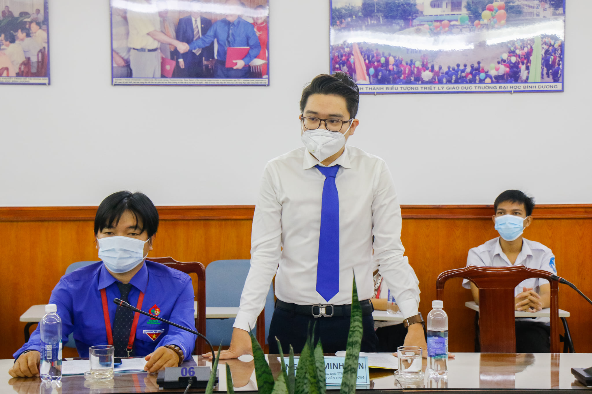 Phát biểu tại Đại hội, Đ/c Nguyễn Minh Sơn đánh giá cao những hoạt động đã đạt được trong nhiệm kỳ 2018 - 2021 của Hội Sinh viên Trường Đại học Bình Dương. Hy vọng rằng, trong nhiệm kỳ mới Ban Chấp hành Hội Sinh viên Nhà trường sẽ tiếp tục phát huy các thế mạnh cũng như những kết quả đã được trong nhiệm kỳ vừa qua, từ đó góp phần xây dựng và thúc đẩy Công tác Hội và Phong trào Sinh viên tại tỉnh Bình Dương ngày càng phát triển cả về chất lẫn lượng.