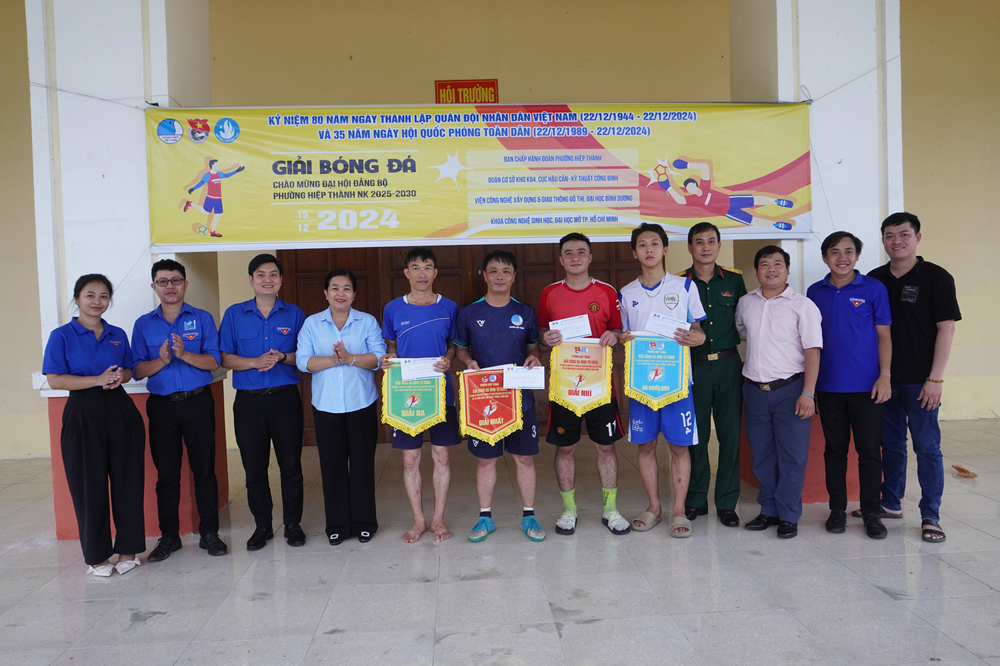 Sáng ngày 15/12/2024, Đoàn Viện Công nghệ Xây dựng và Giao thông đô thị, Trường Đại học Bình Dương (BDU) phối hợp với Đoàn phường Hiệp Thành, TP. Thủ Dầu Một và Khoa Công nghệ sinh học, Trường Đại học Mở TP.Hồ Chí Minh tổ chức giải bóng đá Mini, nhân dịp chào mừng kỷ niệm 80 năm Ngày thành lập Quân đội Nhân dân Việt Nam và 35 năm Ngày Hội Quốc phòng toàn dân.