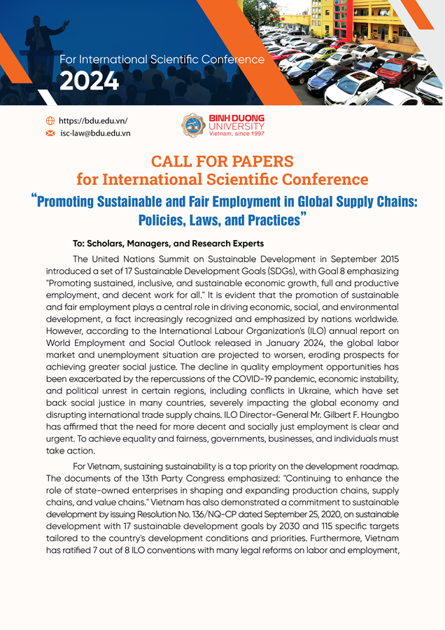Invitation to contribute to the international scientific conference: "Promoting Sustainable and Fair Employment in Global Supply Chains: Policy, Law, and Practice"