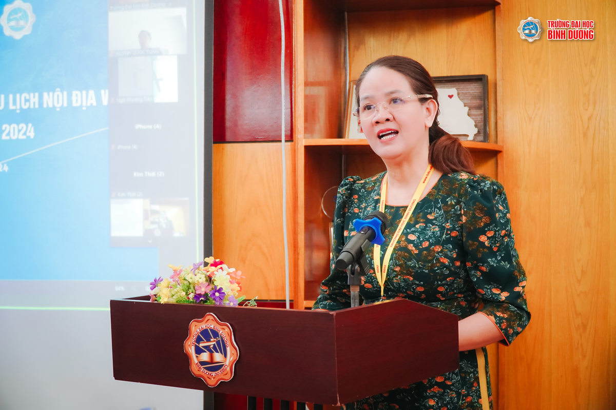 Tiếp đó, TS. Đỗ Đoan Trang - Phó Hiệu trưởng thường trực Trường Đại học Bình Dương đã bày tỏ sự trân trọng, cảm ơn về sự tin tưởng trong việc giao nhiệm vụ với Sở Văn hóa, Thể thao và Du lịch tổ chức khóa cập nhật kiến thức và kỹ năng cho hướng dẫn viên du lịch. Đồng thời khẳng định, Nhà trường sẽ luôn đồng hành nghiêm túc cùng các học viên trong quá trình học tập và rèn luyện.