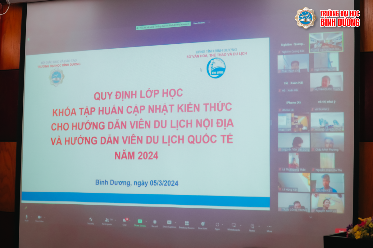 Tham dự lễ khai giảng, có ông Nguyễn Thanh Phong - Phó Giám đốc Sở Văn hóa, Thể thao và Du lịch tỉnh Bình Dương và quý anh/chị đại diện từ Phòng Quản lý du lịch. Về phía Trường Đại học Bình Dương, có TS. Đỗ Đoan Trang - Phó Hiệu trưởng thường trực Trường Đại học Bình Dương cùng các thầy/cô là lãnh đạo, giảng viên từ các khoa/viện/trung tâm/phòng ban chức năng và toàn thể 147 học viên tham gia khóa tập huấn thông qua hình thức trực tuyến.