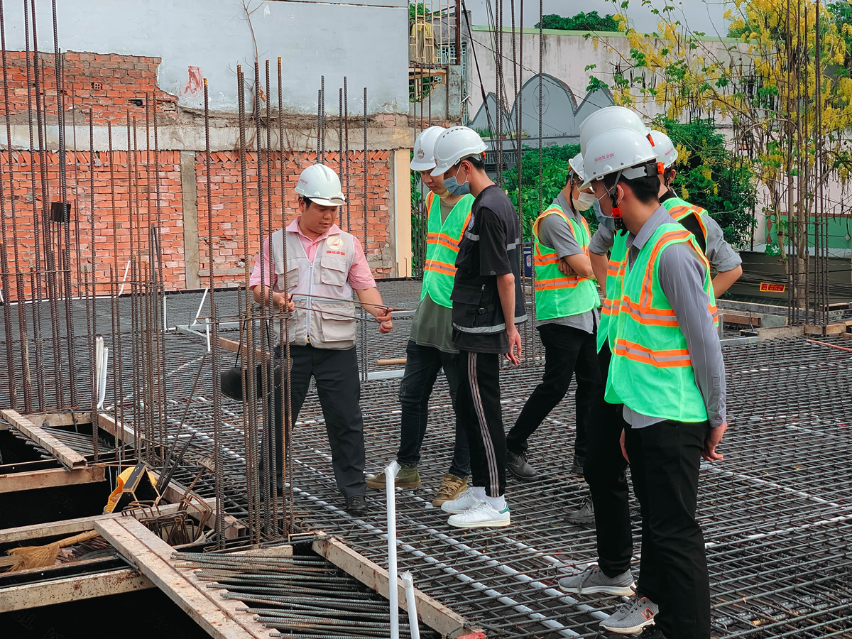 - Đưa sinh viên ra công trường: đối với Ngành Xây dựng, làm việc trên công trường là một trong những công việc chiếm khá nhiều thời gian trong cuộc đời của người làm công việc xây dựng, từ việc giám sát đến việc chỉ huy trực tiếp công trường xây dựng. Do đó, Ngành Xây dựng tích cực đưa sinh viên ra các công trường xây dựng để sinh viên học tập. Trên thực địa, các em được giảng viên chỉ rõ những bộ phận của công trình, kết cấu thép cho các bộ phận công trình...để các em nhận diện được các kiến thức đã học. Tại công trường, các em cũng đưa ra những thắc mắc để giảng viên trả lời. Sự tương tác qua lại giữa sinh viên và giảng viên tại công trường là những bài học hết sức bổ ích cho sinh viên.
