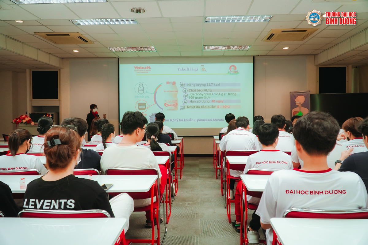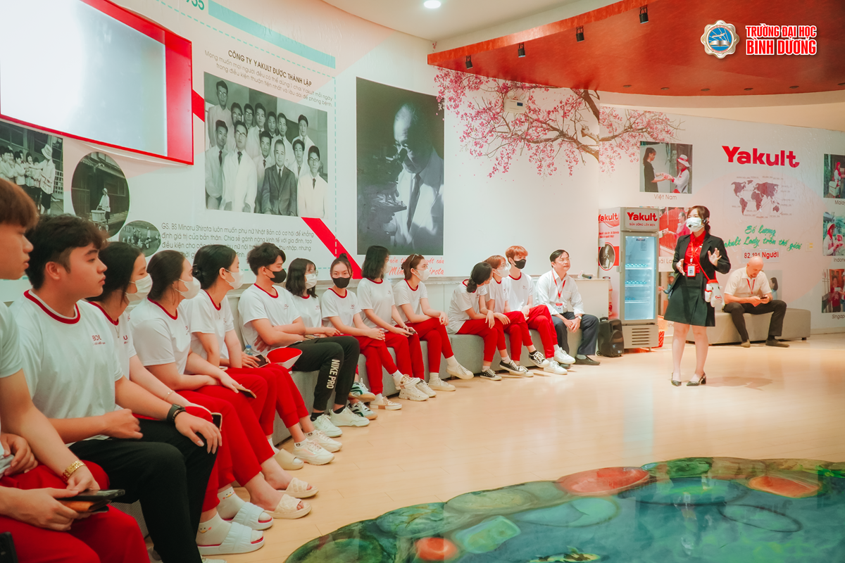 Tham quan doanh nghiệp là một trong những nội dung nằm trong chương trình học của sinh viên BDU. Dưới sự dẫn dắt của chị Như Ngọc – Phòng Phát triển sản phẩm, Nhà máy Yakult Việt Nam, các bạn sinh viên BDU đã được cung cấp nhiều thông tin về lịch sử hình thành, giá trị dinh dưỡng của sản phẩm sữa Yakult.