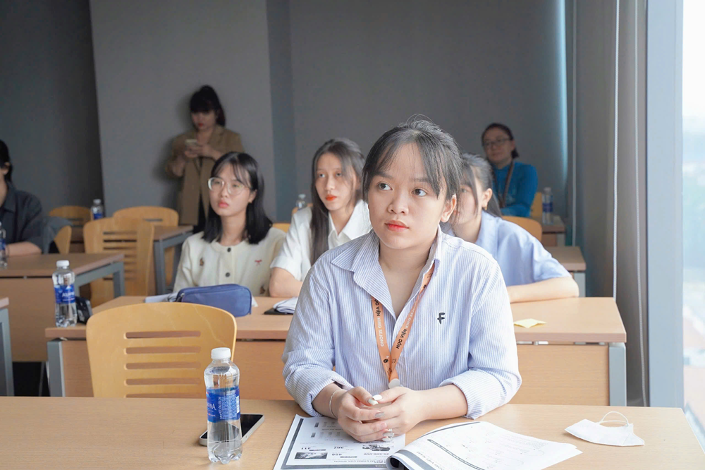 Đây cũng là cơ hội tuyệt vời để sinh viên tiếp cận thông tin tuyển dụng từ Ngân hàng Woori. Đội ngũ chuyên gia giàu kinh nghiệm của ngân hàng đã chia sẻ nhiều gợi ý thiết thực, giúp sinh viên có thêm định hướng cho con đường sự nghiệp trong tương lai. Những câu hỏi thú vị của sinh viên đã được giải đáp tận tình, tạo điều kiện để các bạn hiểu rõ hơn về lĩnh vực tài chính – ngân hàng, cũng như tiềm năng phát triển trong nghề nghiệp.