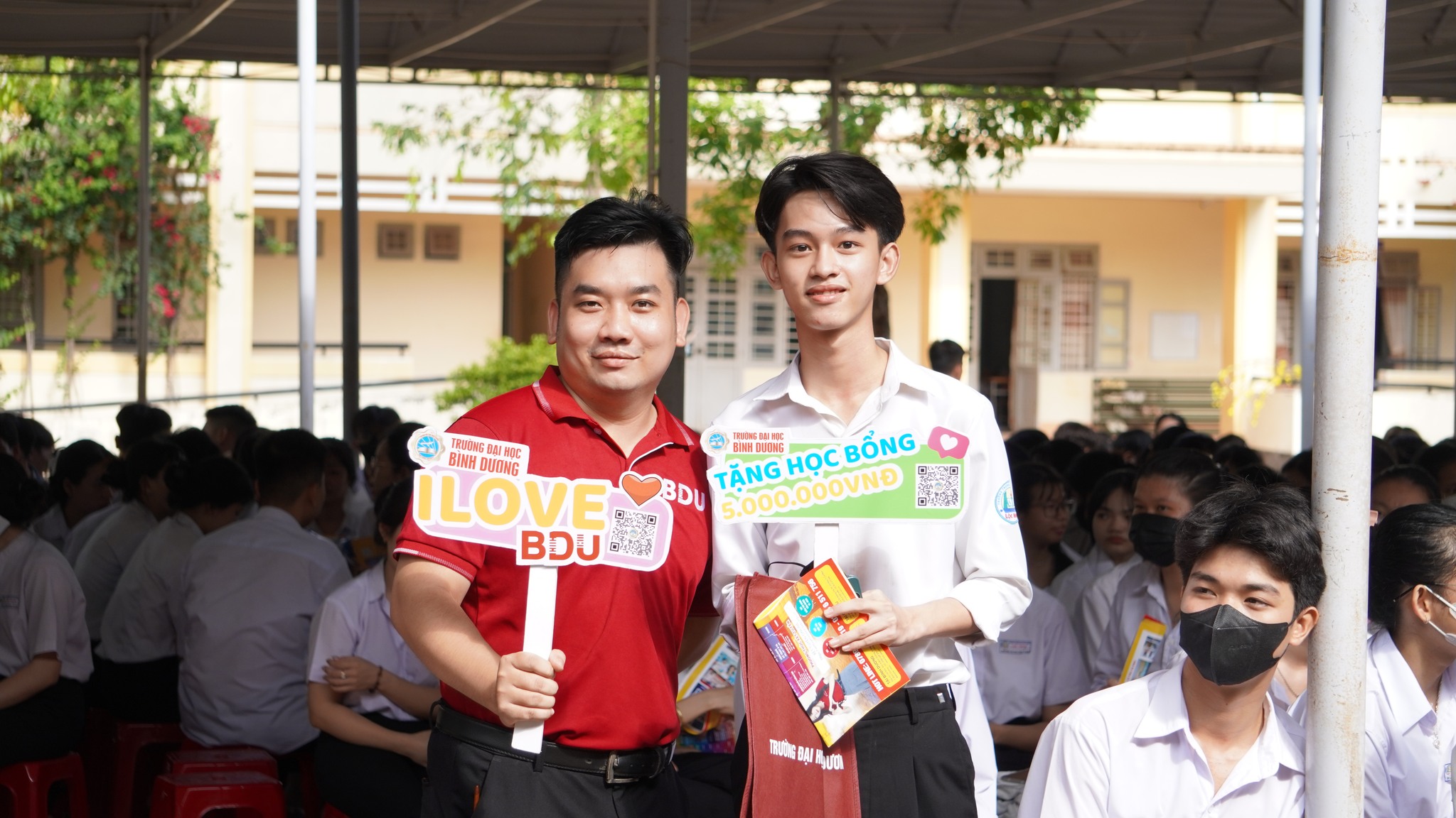 Dịp này, BDU đã trao 5 suất học bổng toàn phần cho những bạn có thành tích xuất sắc và có điểm xét tuyển học bạ cao vào BDU trong đợt xét tuyển này. Với không khí sôi nổi của ngày hội, Đoàn Tư vấn -Tuyển sinh đã tổ chức chương trình giao lưu văn nghệ, giao lưu giữa các em học sinh với Thầy Cô của nhà trường. Chương trình đã giúp cho các em học sinh có được những chuẩn bị tốt về tâm lý, sức khỏe và tinh thần cho kỳ thi tốt nghiệp quan trọng sắp tới. Bên cạnh đó, các Khoa còn tổ chức các gian hàng để tham quan, gặp gỡ chia sẻ, tư vấn và giải đáp các thắc mắc của các em học sinh quan tâm đến từng chuyên ngành, chức năng đào tạo của các Khoa và đặc thù học tập của từng Khoa.