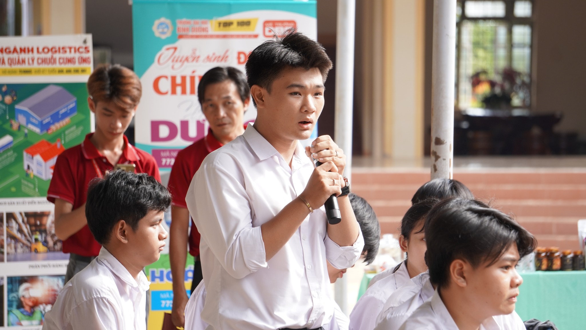 Sáng 18/5/2024, Trường Đại học Bình Dương (BDU) phối hợp cùng Huyện đoàn Lộc Ninh (Bình Phước) tổ chức ngày hội tư vấn tuyển sinh tại Trường THPT Lộc Ninh thu hút hơn 500 em học sinh khối 12 của Nhà trường tham dự. Ngày hội là dịp để các bạn học sinh được các thầy/cô tư vấn tuyển sinh, định hướng nghề nghiệp; được tìm hiểu về thị trường lao động qua việc lắng nghe, tiếp xúc và tìm hiểu sâu hơn những yêu cầu, cơ hội việc làm các ngành nghề, từ đó định hướng cho mình con đường nghề nghiệp trong tương lai.