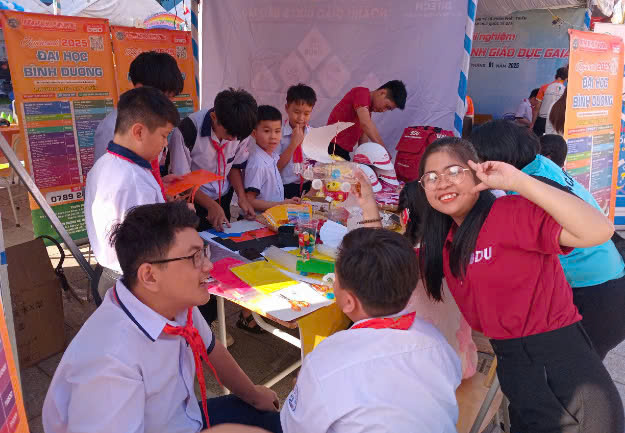 Học sinh hào hứng tham gia các hoạt động cùng nhóm STEM Trường Đại học Bình Dương.