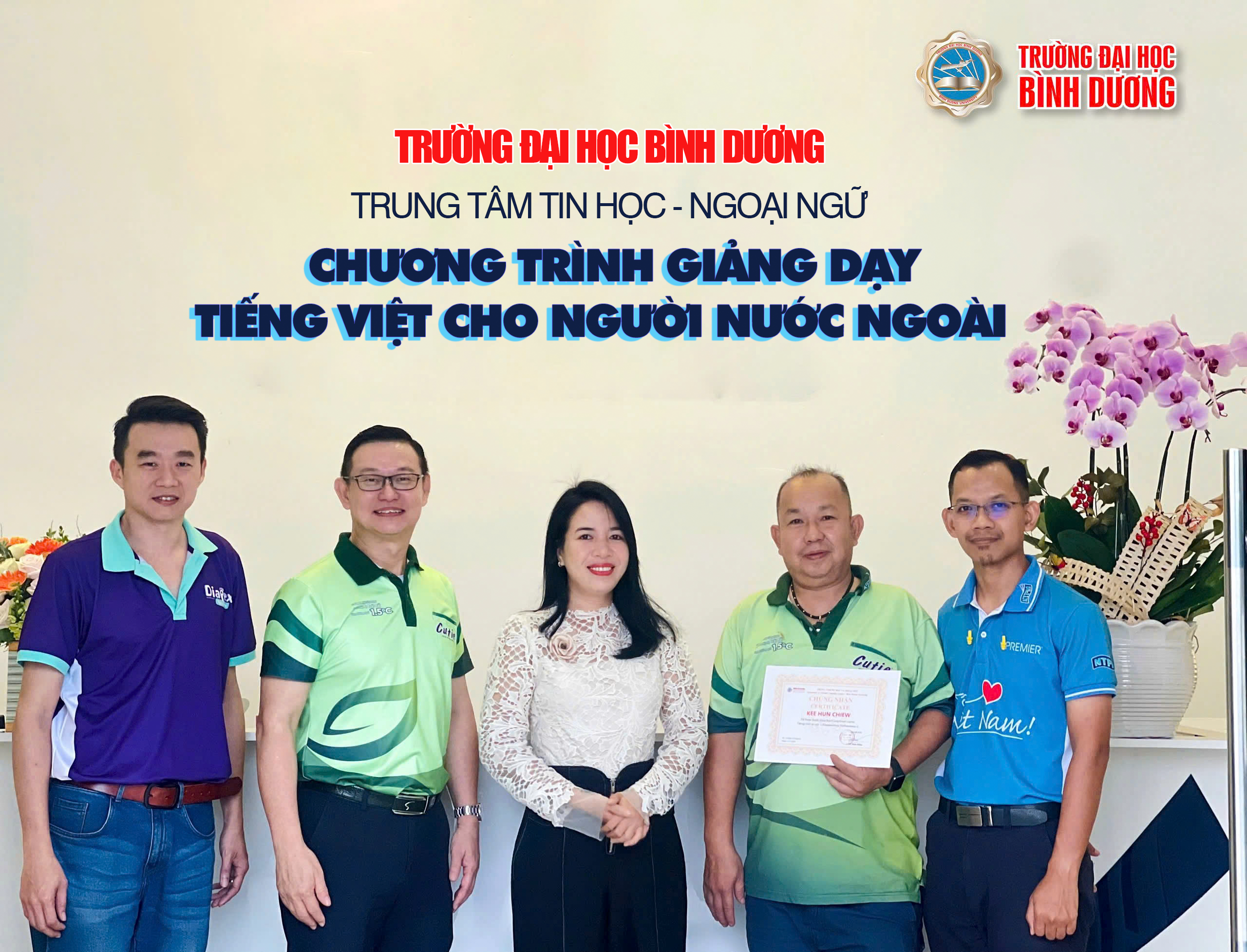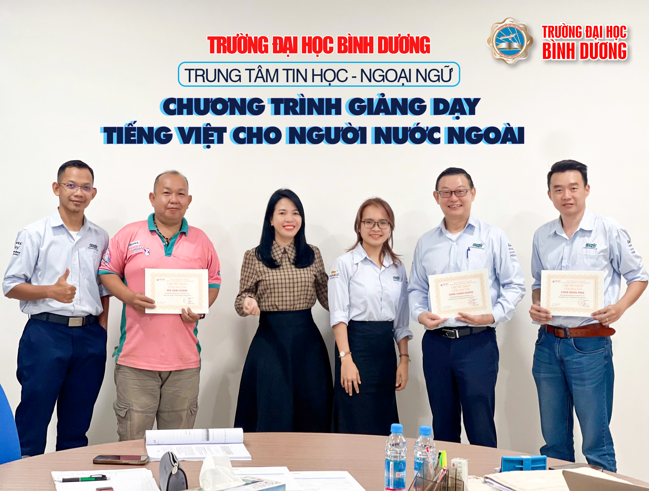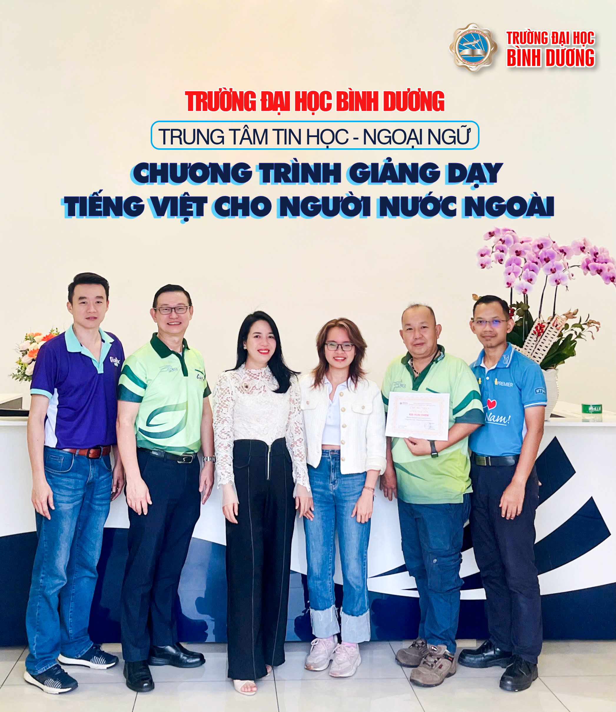 Trung tâm Tin học - Ngoại ngữ, Trường Đại học Bình Dương, tự hào mang đến chương trình giảng dạy Tiếng Việt dành cho người nước ngoài, giúp học viên không chỉ học ngôn ngữ mà còn khám phá văn hóa và hòa nhập nhanh chóng vào cuộc sống tại Việt Nam.