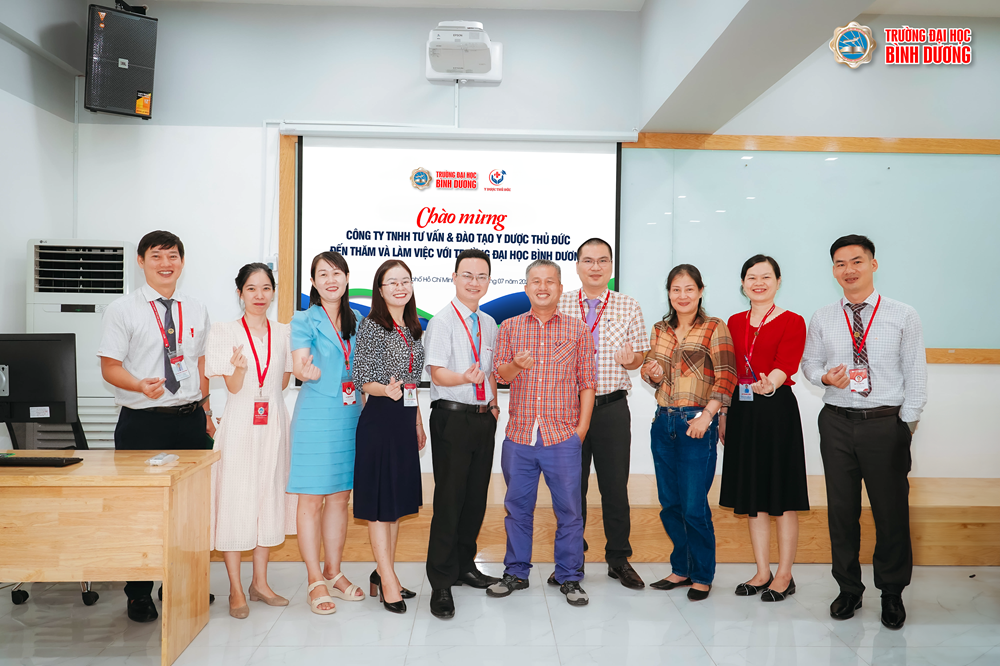 Sáng ngày 15/07/2025, Trường Đại học Bình Dương đã tổ chức buổi tiếp đón và làm việc với đại diện công ty TNHH Tư vấn và Đào tạo Y Dược Thủ Đức tại phòng họp A1.4.